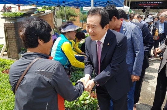 정세균 국회의장이 4일 오전 11시 진안을 방문했다. 정 의장은 진안읍 한 찻집에서 이항로 군수 등 지역 인사들과 간단한 티타임을 가진 후 진안 시장을 둘러 봤다.