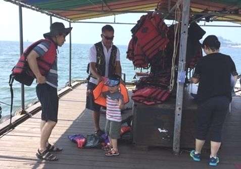 ▲ 수상레저를 즐기기 위해 어린이가 구명조끼를 입고 있다.