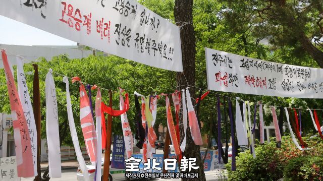 ["고용승계 보장하라" 전주도심 현수막] "오죽하면 저럴까"…"전주 이미지 나빠져"