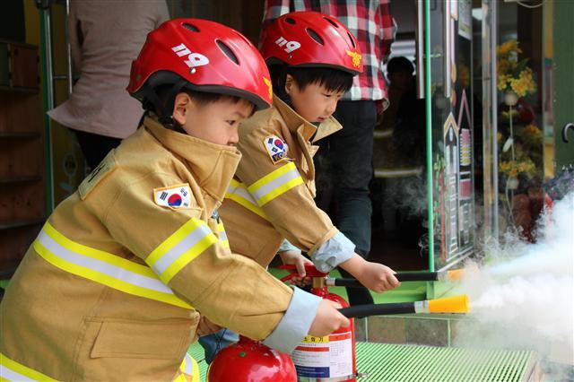 이날 어린이들은 동영상을 통한 교육과 어린이 방화복 착용, 연기소화기 체험등 직접 보고 듣고 체험하며 안전의식을 함양했다.