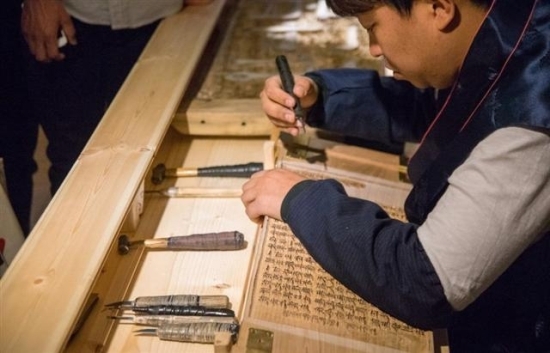 ▲ 전통판각 시연.