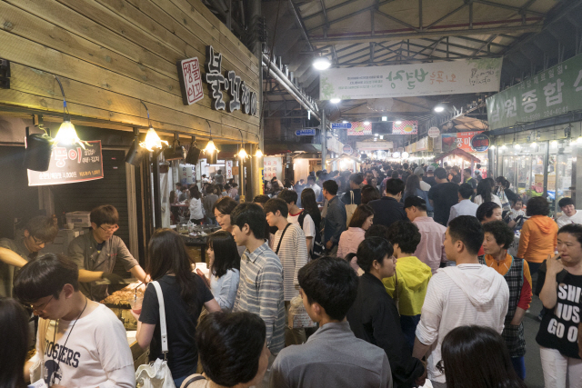 ▲ 매주 토요일 오후 7시부터 밤 12시까지 운영되고 있는 광주 동구 대인예술시장에 많은 관광객들로 북적이고 있다. 광주일보=김진수 기자