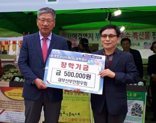 재부산부안향우회(회장 임동한)은 지역인재 육성을 위해 사용해 달라며 장학금 50만원을 부안군 나누미 근농장학재단에 전달했다.