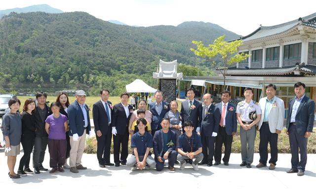 ▲ 23일 남원 운봉읍 황산정에서 열린 이병희 선생의 공적비 제막식에서 참석자들이 기념촬영을 하고 있다.
