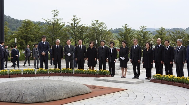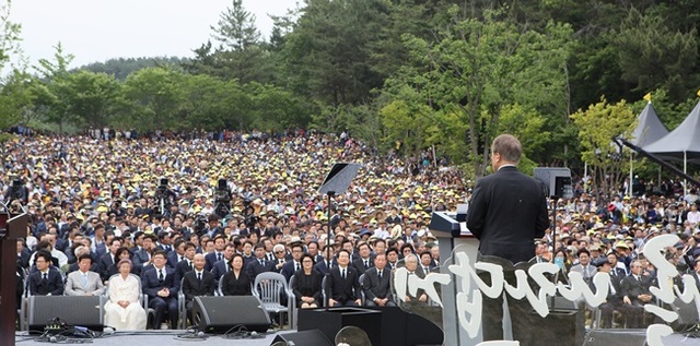 이날 추도식에서 문 대통령은 “8년의 세월이 흘렀는데도 변함없이 노무현 대통령과 함께 해주셔서 무어라 감사 말씀을 드릴지 모르겠다”며 참석자들에게 감사의 말을 전했다.