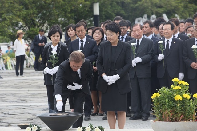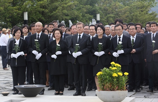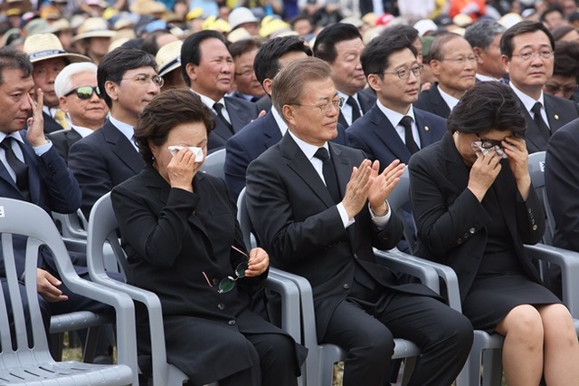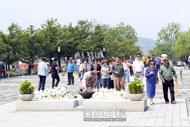추모시 ‘운명’ 낭송과 가수 한동준의 추모 공연, 추모 영상 관람, 나비 날리기 등 추모행사를 마친 추모객들은 ‘님을 위한 행진곡’을 제창한 뒤 묘역 참배로 추도식을 마무리했다.