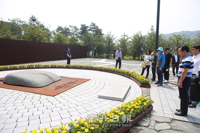너럭바위 앞 국민의 추모 메시지가 담긴 바닥석 1만5000개도 참배객들을 맞이했다.