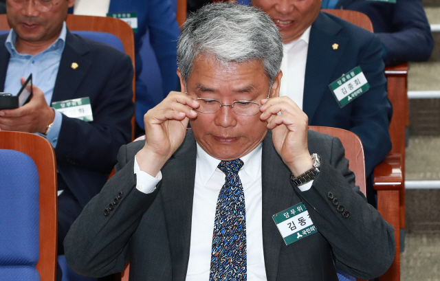 ▲ 국민의당 김동철 당대표 권한대행 겸 원내대표가 23일 오전 국회 본청에서 열린 제2차 당무위원회에 참석해 안경을 고쳐 쓰며 생각에 잠겨 있다. ·연합뉴스