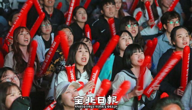 지난 26일 오후 8시 전주시 전동 풍남문 광장. 수 백 명의 붉은 물결 사이로 “대~한민국!”이 울려 퍼졌다.