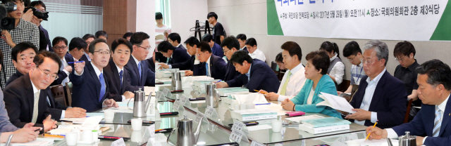 29일 서울 여의도 국회 의원회관에서 지역 국회의원 10명과 송하진 도지사, 실국장 등이 참석한 가운데 예산정책협의회가 열렸다. 국민의당 전북도당 주관으로 열린 이날 협의회에서 전북도는 2018년 국가예산 6조 원 달성을 좌우할 부처 쟁점사업과 도정 현안을 설명했다.