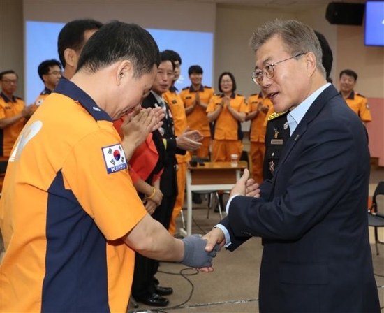 문 대통령 "임기 내 소방공무원 1만 9000명 이상 확충"