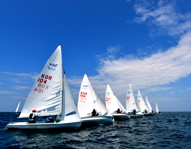 ▲ 물이 맑고 파도가 일정한 울진의 해안은 해양 레포츠를 즐기기에 안성맞춤이다. 매년 코리아컵 국제요트대회가 열리는 곳도 바로 울진이다. 사진 제공=경북 울진군