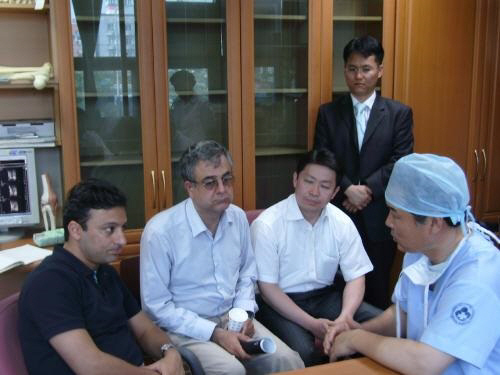 ▲ 박근호 원장이 개발하여 특허를 낸 척추질환치료에 있어 최소한의 절개로 환자의 빠른 회복과 수술 후 통증을 획기적으로 줄일 수 있는 Apollon(수술기구명칭)에 대해 수술방법을 배우고자 이란에서 3명의 전문의가 연수를 와서 배우고 갔다.