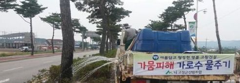 산림조합은 가뭄으로 인하여 가로수가 고사하는 것을 방지하기 위하여 살수차를 이용하여 가뭄이 해소될 때까지 지속적으로 물주기 작업을 펼칠 예정이다.