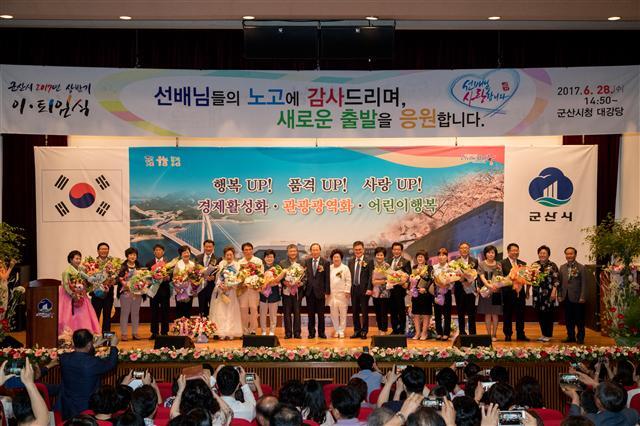 군산시는 28일 시청 대강당에서 퇴직·공로연수자 28명을 대상으로 ‘군산시 2017년 상반기 이·퇴임식’을 개최했다.
