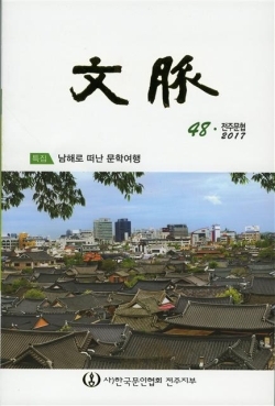 (사)한국문인협회 전주지부(지부장 이소애)가 문예지 ‘문맥’ 제48호를 출간했다. 이번 호에는 특집 ‘남해로 떠난 문학기행’을 비롯해 회원 100여 명의 시·시조·수필·동시·동화·평론이 수록됐다. 김형중, 박기태, 이목윤, 이점이, 조미애, 김추리, 전일환, 고미희, 양봉선, 양병호, 장세진 등 회원들의 글이 어우러져 아름다운 꽃밭을 만들었다.