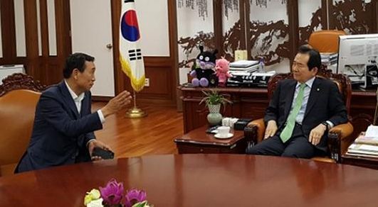 ▲ 김생기 정읍시장은 5일 정세균 국회의장과 단독 면담을 갖고 시의 현안사업을 설명하면서 국비 지원을 요청했다.