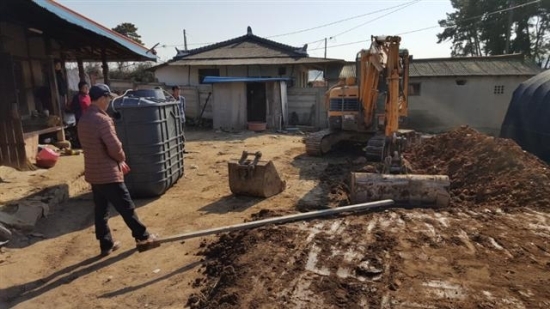 ▲ 부안군 주민행복지원실 희망복지지원단 통합사례관리사들이 한 가정을 방문해 주거환경 개선 작업을 진행하고 있다.