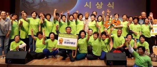 ▲ 순창군 방축마을 주민들이 지난 5일 전라북도청에서 열린 제4회 생생마을 만들기 콘테스트에서 CAC분야 최우수상을 수상하고 기념촬영을 하고 있다.