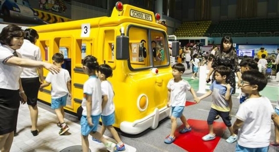 오는 15일까지 열리는 교통안전교실은 친숙한 로보카 폴리 만화 캐릭터를 활용해 자전거 안전교육, 횡단보도 건너기 체험, 승하차 및 사각지대 안전교육 등 어린이들의 실생활과 밀접한 교육을 실시해 참가자들로부터 큰 호응을 얻고 있다.