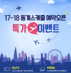 19일 오후 2시에 오픈하는 일본·중국노선은 25일까지 특가이벤트가 진행되며 편도총액 최저가 인천-도쿄 7만8000원, 인천-오사카 7만8000원, 부산-오사카 6만3000원, 인천-후쿠오카 7만8000원, 인천-오키나와 8만8000원, 인천-삿포로 8만8000원, 청주-연길 9만9000원부터 판매한다.