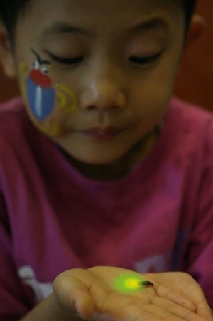 ▲ 한 어린이가 반딧불이 신비탐사 체험을 하고 있다.
