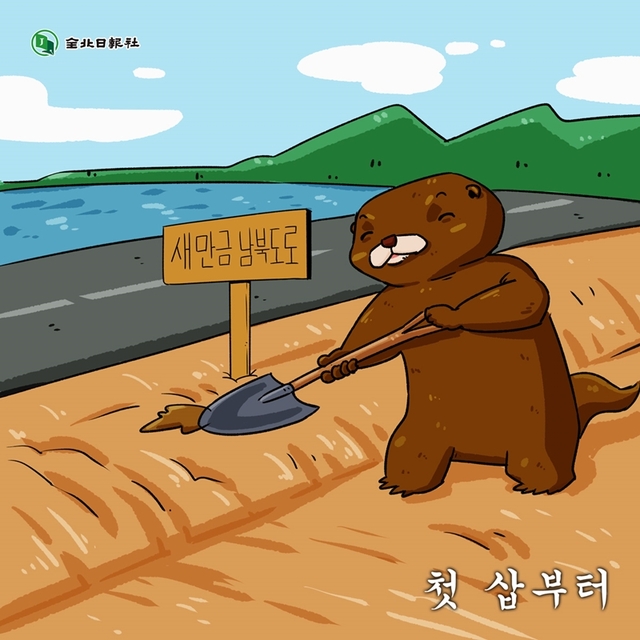 - 새만금 남북도로에 한 삽 뜨는 수달