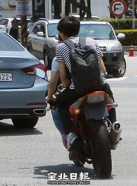 29일 번호판을 달지 않은 미등록 오토바이에 헬멧 등 안정 장비를 착용하지 않은 운전자와 탑승자가 위태롭게 전주 백제로를 달리고 있다.