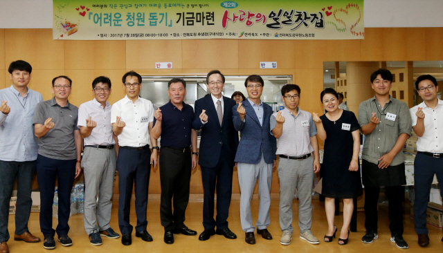 어려운 청원 돕기 기금 마련을 위한 사랑의 일일찻집 행사가 28일 전북도청 지하1층 후생관에서 열려 송하진 도지사가 관계직원들을 격려하고 있다. 사진제공=전북도