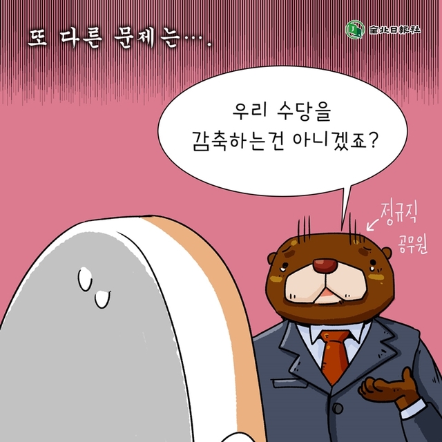 곤란한 표정으로 조심스레 묻는 수달 “우리 수당을 감축하는 건 아니겠죠?” ← 정규직 공무원