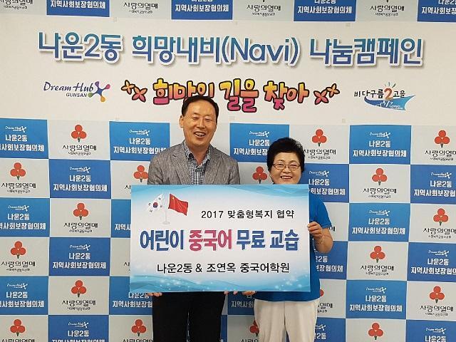 이번 협약을 통해 나운2동은 지역내 저소득층 어린이들의 복지 향상을 위해 연중 50여명의 어린이들에게 지속적으로 초급부터 고급까지 중국어 교습을 무료로 제공하게 된다.