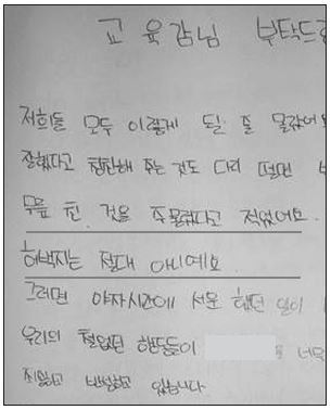 ▲ 유족이 공개한 학생 탄원서 내용의 일부.