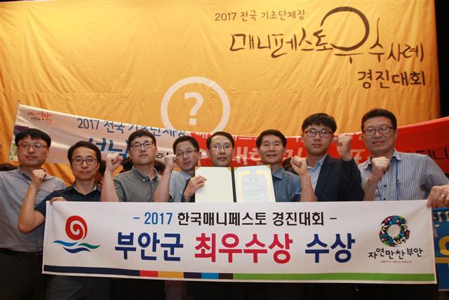 부안군(군수 김종규)은 지난 9~10일 한국매니페스토 실천본부에서 주최한 ‘2017 전국 기초단체장 매니페스토 우수사례 경진대회’에서 참여예산제 분야 최우수상을 수상했다.