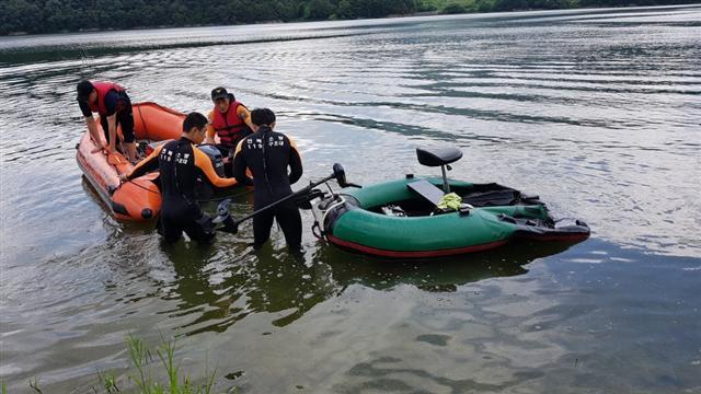 저수지에서 고무보트를 타고 홀로 낚시를 즐기던 40대가 고무보트가 터지는 사고로 119구조대에 의해 구조됐다.