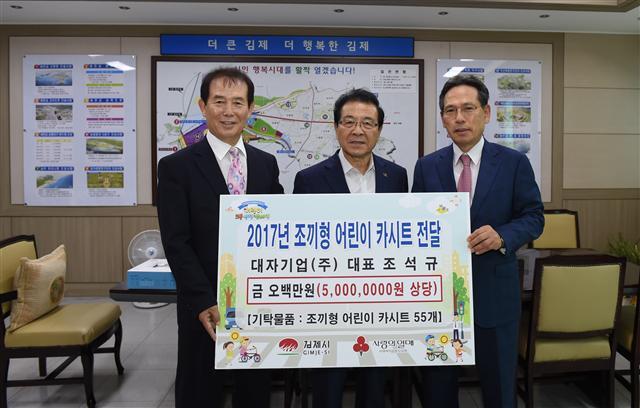 이번 카시트 보급사업은 교통안전클럽에서 시행 하는 지역 내 어린이 교통사고 줄이기 사업의 일환으로 추진했으며, 대자기업이 사회공헌 차원에서 카시트를 후원했다. 사랑의 열매 사회복지공동모금회와 함께 하는 후원물품(어린이 카시트) 지원 대상은 김제시민 중 기초생활보장수급자 및다자녀 및 차상위 계층 가정으로, 김제시 드림스타트 담당 및 읍·면·동장의 추천을 받아 선정했다.