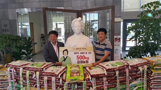 김제농협(조합장 이정용)은 지난 22일 제주특별시 소재 김만덕 기념관(관장 김상훈)에 김제産 쌀 500㎏을 기부했다.
