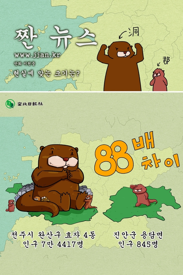 관련기사 전북지역 읍·면·동 인구 차이 최대 88배