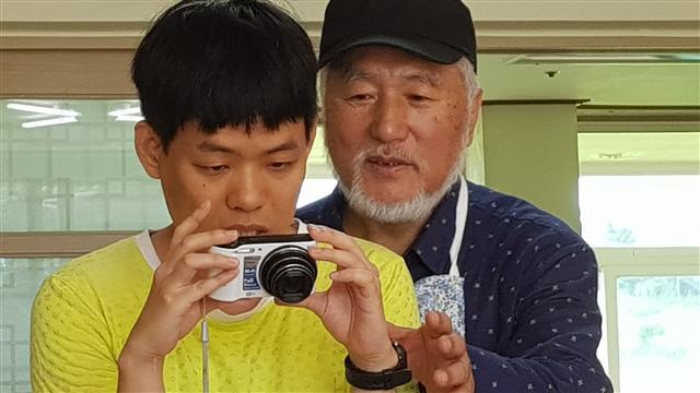 ▲ 사진 교육을 받으며 직접 사진을 찍어보고 있는 김건씨.