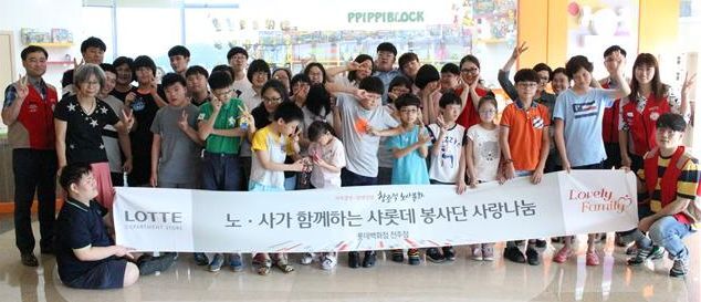 롯데백화점 ‘샤롯데 봉사단’은 백화점에 근무하는 직원들로 구성된 봉사단으로 매월 소외된 이웃과 장애인 시설을 방문하여 사랑의 나눔 봉사를 꾸준히 펼치고 있다.