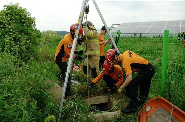 신고를 받고 출동한 현장대원 17명은 주변을 수색하여 도착 5분 만에 사고가 발생한 맨홀을 발견하고 추락한 남성의 의식을 확인한후 즉시 공기충전용기를 활용한 맨홀 내부 공기정화및 유해가스 농도 측정을 실시하고 맨홀 구조기구를 설치하여 대원이 아래로 내려가 남성을 안전하게 구조했다.