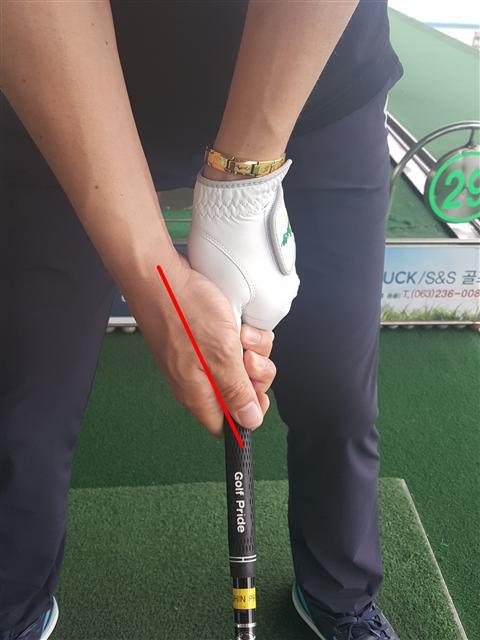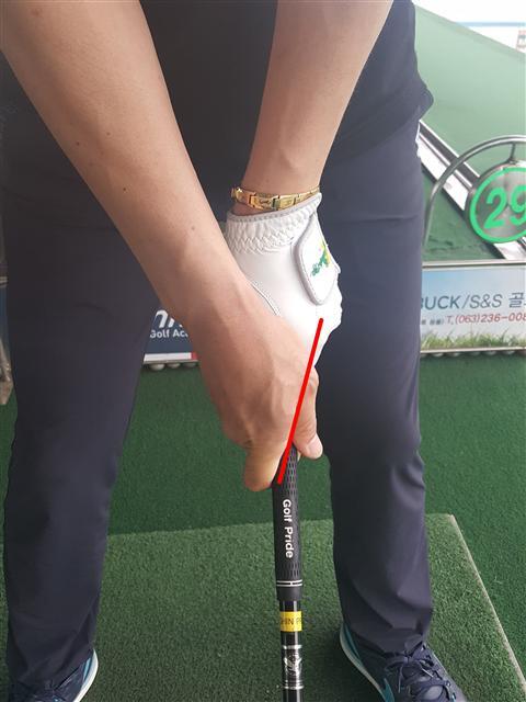 왼손뿐만 아니라, 오른 손도 마찬가지로 〈사진 2〉처럼 다운스윙을 하면서 로테이션이 잘 되지 않게 잡고 있으면 약한 그립이라고 하는 것이다. 그립을 꽉 잡아서 스트롱 그립이 아니고, 그립을 약하게 잡아서 위크 그립이 아니듯이 그립의 강도를 약한 그립, 강한 그립이라는 말로 혼동하지 않아야 한다.