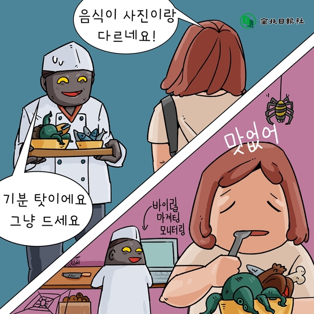 (식당에 들어갔지만, 식당 사장과 분위기, 음식들이 수상하다. 하지만 참고 먹는 A양 식당 주인은 몰래 인터넷으로 바이럴 마켓팅을 모니터링 하고 있다)