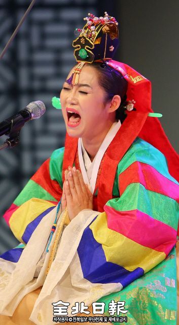 제43회 전주대사습놀이 전국대회 본선이 열린 11일 국립무형유산원 대공연장에서 판소리 명창부에서 장원을 차지한 방윤수씨가 흥보가 중 ‘흥보 매 맞는 대목’을 열창하고 있다. ▶ 관련기사 10면