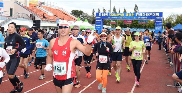 제16회 김제새만금지평선 전국마라톤대회가 17일 김제시민운동장에서 5000여명의 건각들이 참가한 가운데 성황리 열렸다.