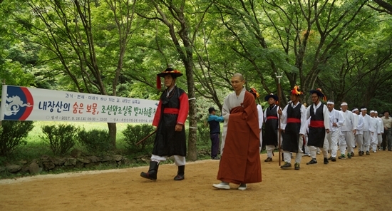 내장산국립공원사무소(소장 김용무)가 주최한 ‘조선왕조실록 이안 행렬 재현행사’는 김생기 정읍시장, 유진섭 시의회의장, 김종화 경찰서장, 김영수 정읍문화원장, 도완 내장사주지스님, 김용무 소장과 사무소 직원및 자원활동가, 탐방객등 200여명이 참가해 역사적 의미를 되새겼다.
