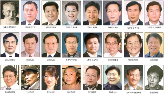 △경제계: 이강봉 전 금호아시아나 인재개발원장(대수리), 이기동 신라건설 회장(평교리), 최규환 신평종합건설 대표(대죽리), 김재기 삼성특수목재 대표(평교리 망산), 이용훈 한성공업사 대표(원천리), 김재규 시그마종합건설 대표(신평리 광덕)