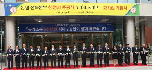 전북농협(본부장 강태호)은 20일 지난 33년간의 인후동 시대를 마감하고 ‘농업인이 행복한 국민의 농협’시대를 열 농협 전북본부 신청사 준공식 및 하나로 마트 개점식을 개최했다.