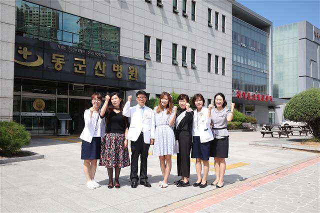▲ 중국 내 17만 명의 팔로워를 보유한‘왕홍’청단단 씨(왼쪽 4번째)와 동군산병원 관계자들.