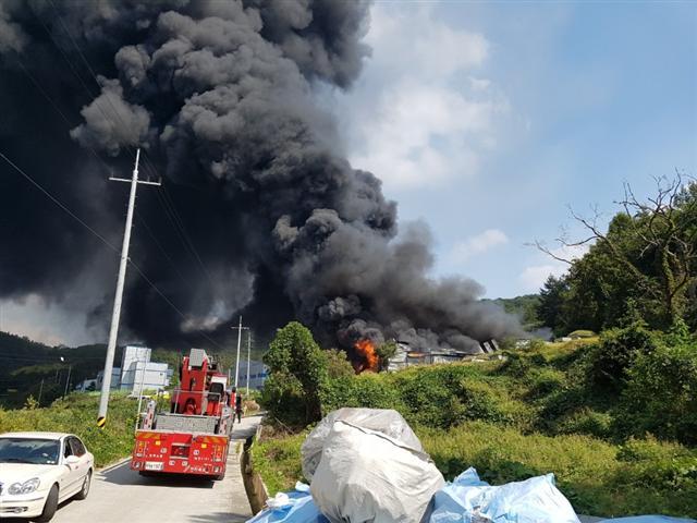 주민 신고를 받고 출동한 소방당국은 소방차 26대와 소방과 산림청 헬기 2대를 동원해 진화에 나섰지만 스티로폼 자재 등이 불에 타면서 유독연기를 내뿜어 초기 진화에 어려움을 겪었다.