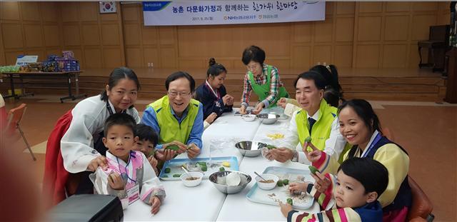 이날 행사에는 NH농협금융지주 김용환 회장과 유남영 NH농협금융지주 이사, 소성모 부행장, 강태호 NH농협 전북지역본부장, 최용구 NH농협은행 전북영업본부장, 조천형 NH농협 정읍시지부장, 정읍농협 유백열 상임이사를 비롯한 임직원, 정읍농협 자원봉사단, 정읍관내 다문화가족등 100여명이 참석해 즐거운 한마당 잔치를 연출했다.